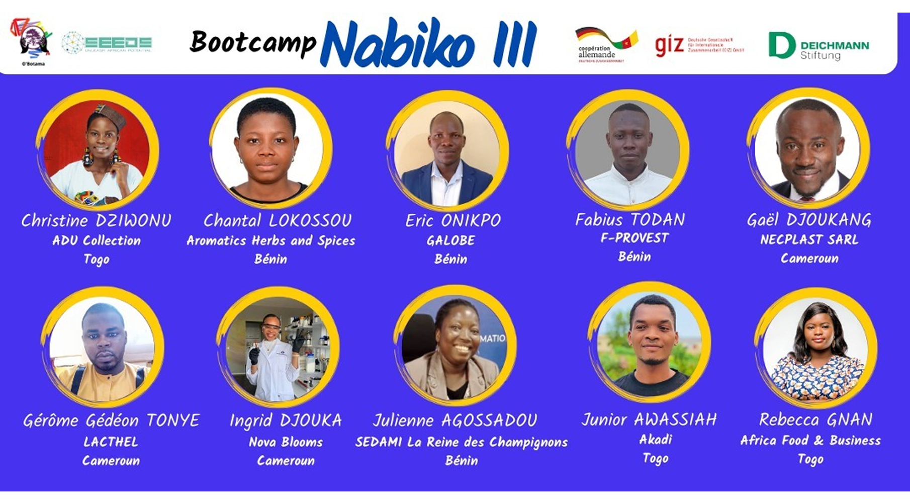 Cette initiative, mise en œuvre par O’Botama en partenariat avec la GIZ (CIM) et SEEDS, est bien plus qu’un simple programme de mentorat : c’est un pont favorisant l’échange de connaissances, la création de connexions mondiales et l’accélération de la croissance des jeunes entrepreneurs les plus prometteurs du continent.